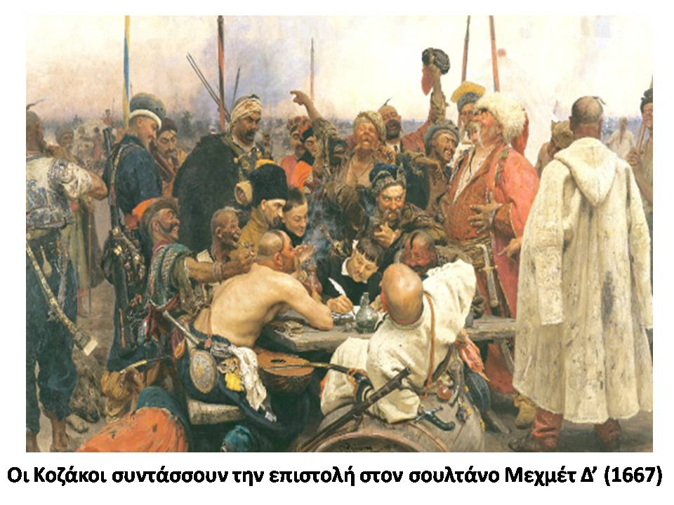 Οι Κοζάκοι, το 1667, με ηγέτη τον Ιβάν Σίρκο, συγκεντρώθηκαν στο Ζαπαρόγκ και απάντησαν στην επιστολή του Σουλτάνου Μεχμέτ Δ’ με βρισιές και προσβολές που θα …ζήλευε και ο ίδιος ο Καραϊσκάκης.